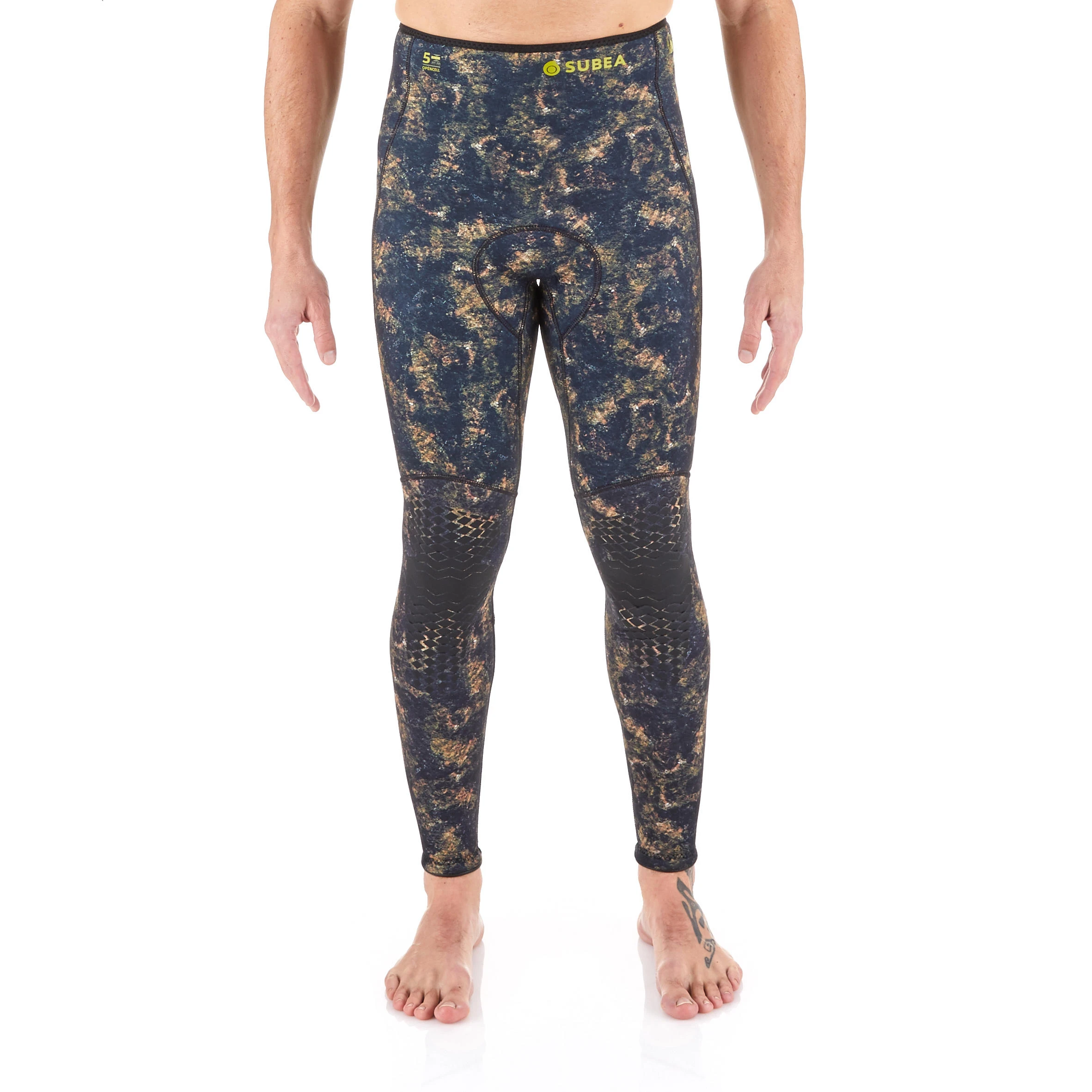Subea designed these split neoprene trousers with unstructured or realistic camouflage for intermediate spearfishing divers in temperate waters (16/24°C)These spearfishing wetsuit trousers feature Subea’s new and exclusive camouflage. It provides warmth, stealth and comfort with its anatomic cut and 5 mm split neoprene.