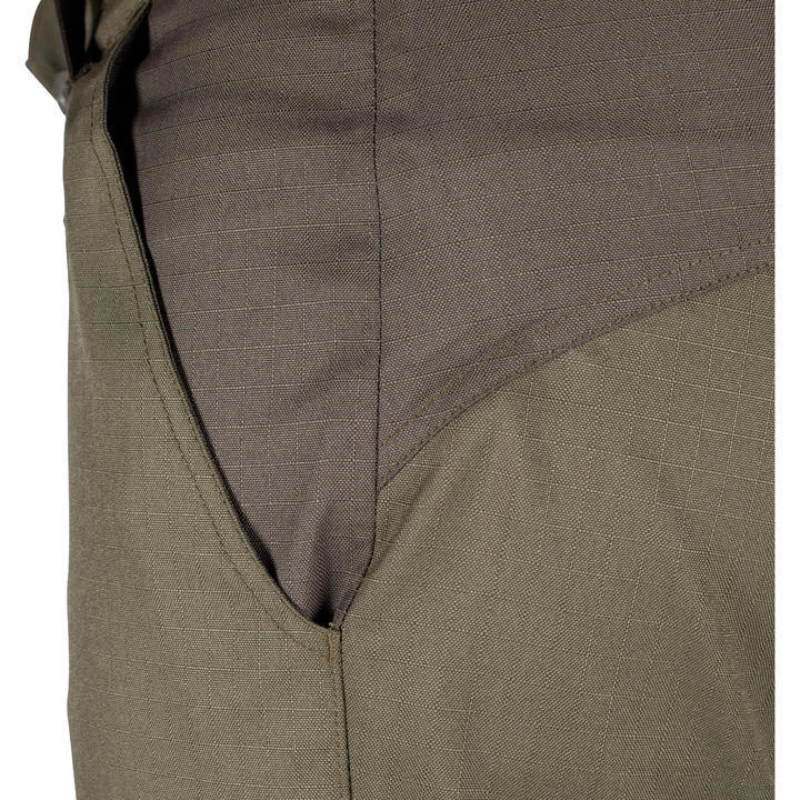 -Tear-resistant fabric from knee to ankle.