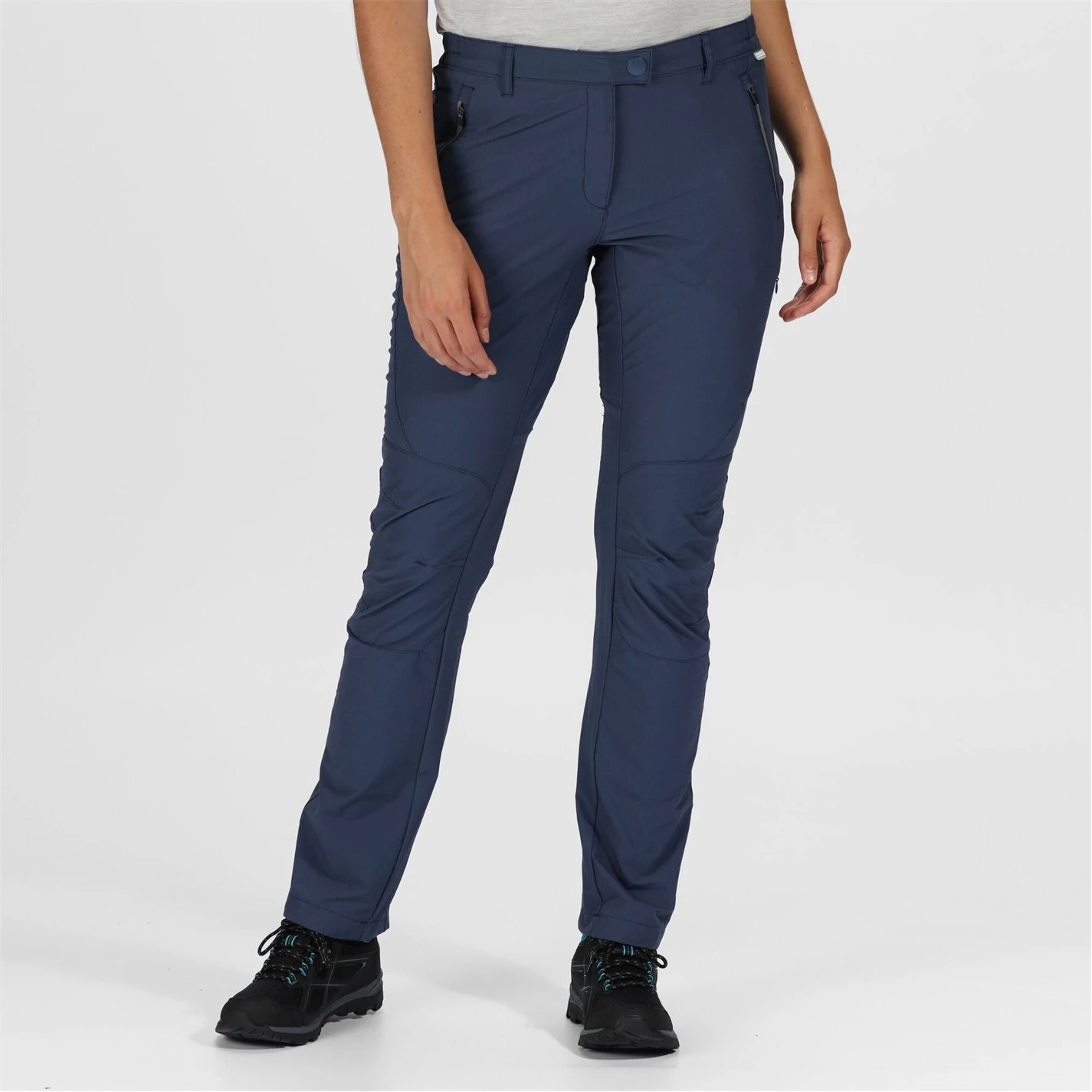 The women’s Highton Trouser from Regatta is made of high-stretch, weather-resistant Isoflex fabric with a DWR (Durable Water Repellent) finish and UPF 40+ sun protection built-in. straight-leg fit. With multiple zipped pockets and the Regatta tab on the waist.