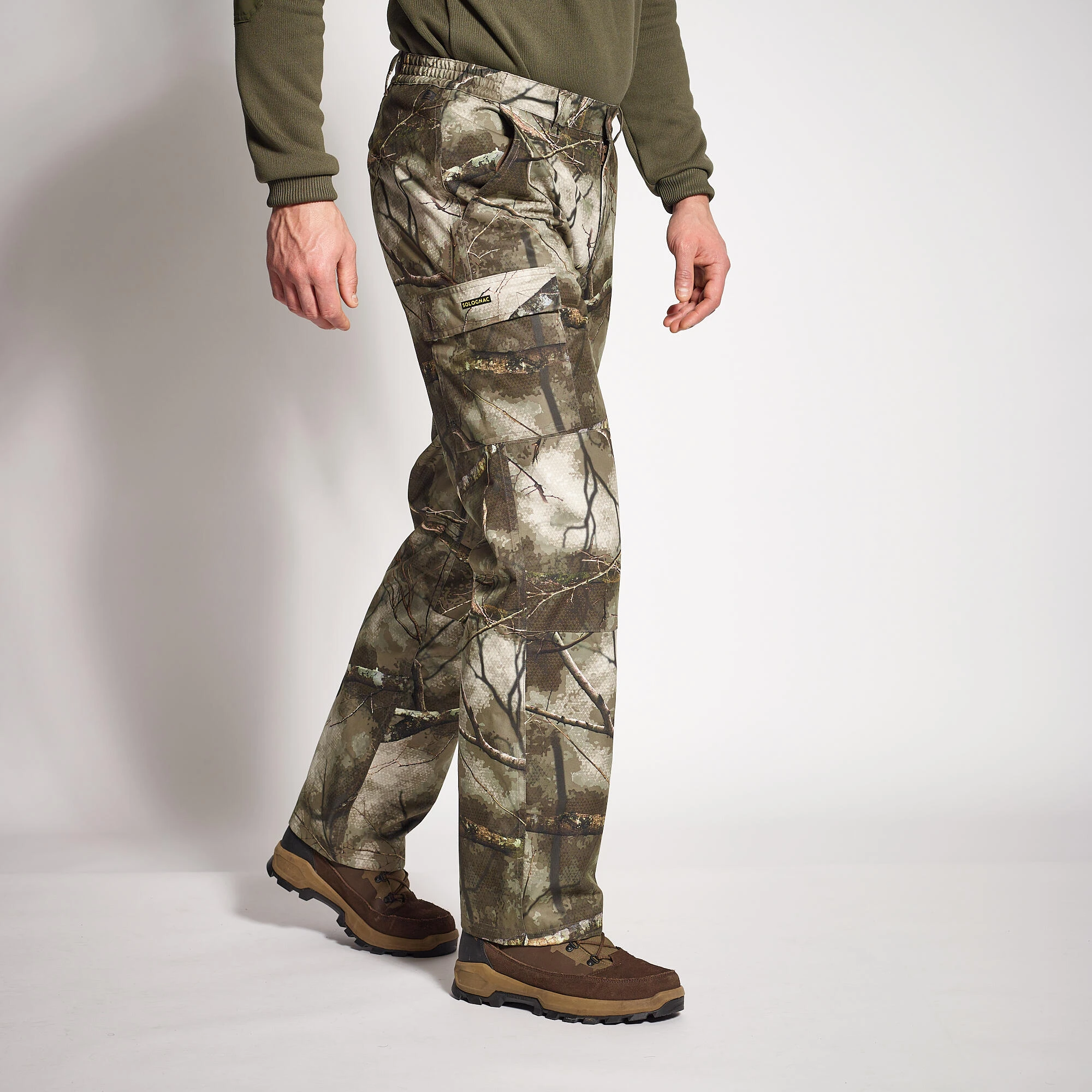 These hunting trousers have the exclusive Solognac camouflage pattern in autumn/winter brown tones.